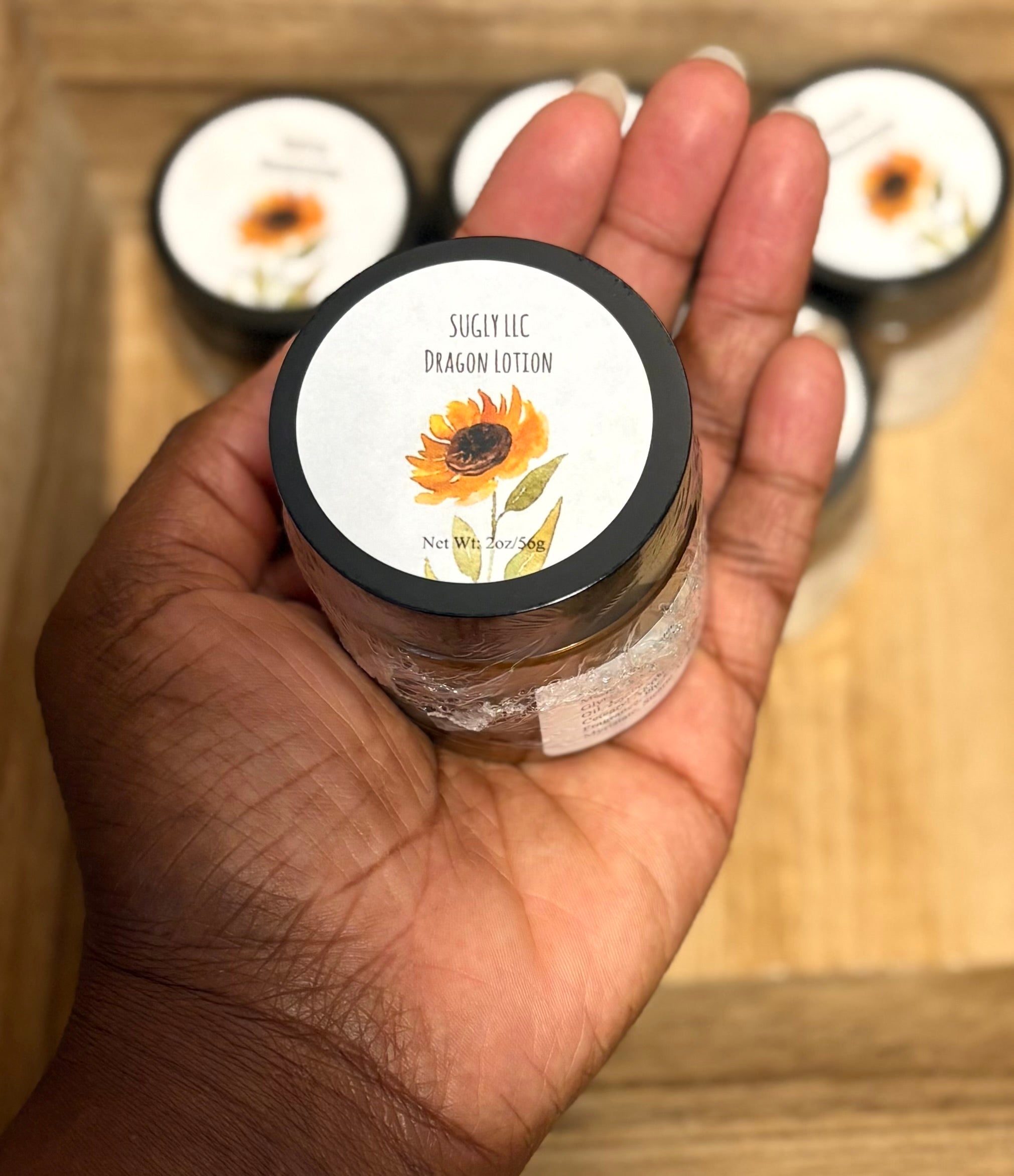 Dragon is a creamy, handmade tallow-based lotion designed to nourish and hydrate the skin. It is formulated to create the perfect blend of smooth and silky lotion. It has a delicate scent of cherry blossoms, musk, apples, oranges, peaches, and a hint of vanilla. It pairs great with the Dragon Soap bars. All lotions are wrapped in a biodegradable and compostable shrink film.