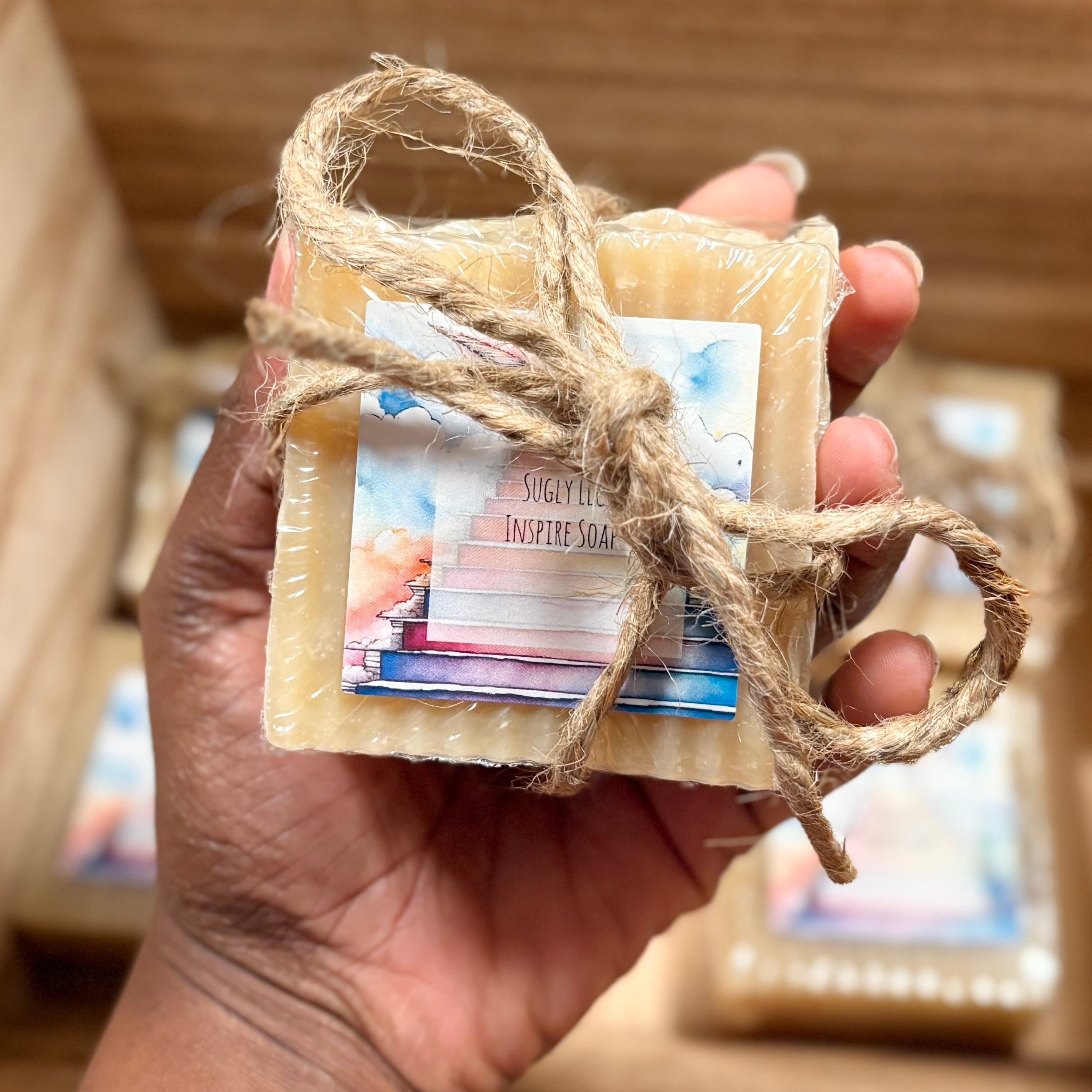 Inspire Soap is invigorating with a light musk scent with spicy notes. This bar includes Mustard Oil, which is known to lock in moisture. The dollar menu bar soaps come in (1) 4oz or greater bar or 2 to 3 smaller bars of Inspire Soap that equal up to 4oz or greater.