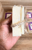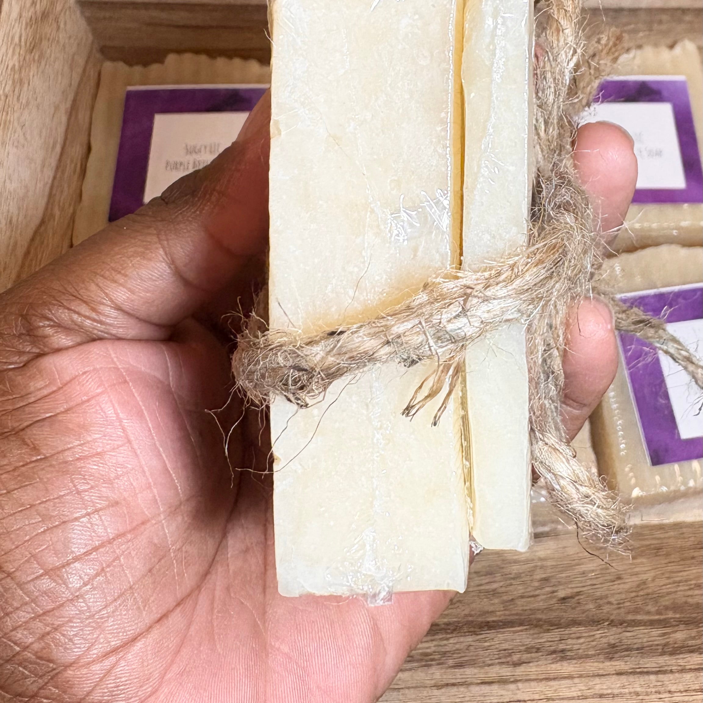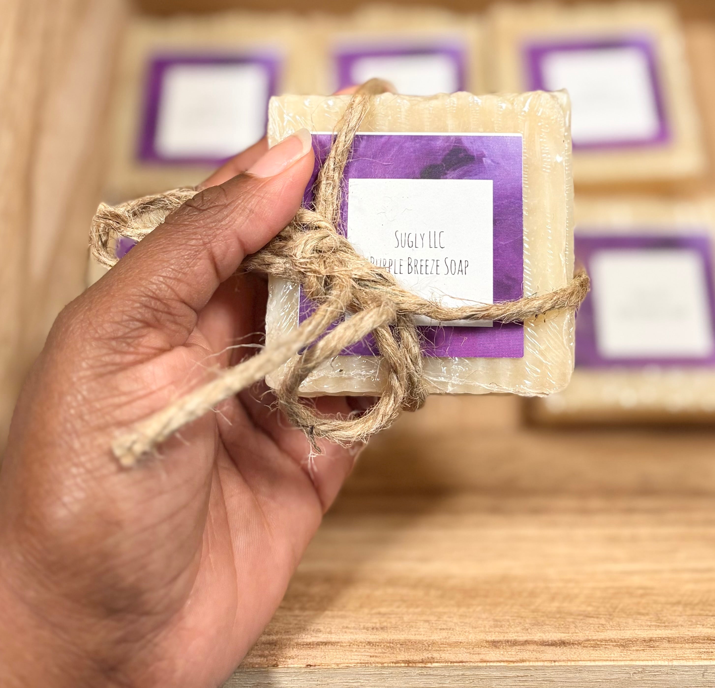 Purple Breeze has hints of sweet lavender. It lathers up like a beauty cream and leaves your skin hydrated. The dollar menu bar soaps come in (1) 4oz or greater bar or 2 to 3 smaller bars of Purple Breeze Soap equal to 4oz or greater.