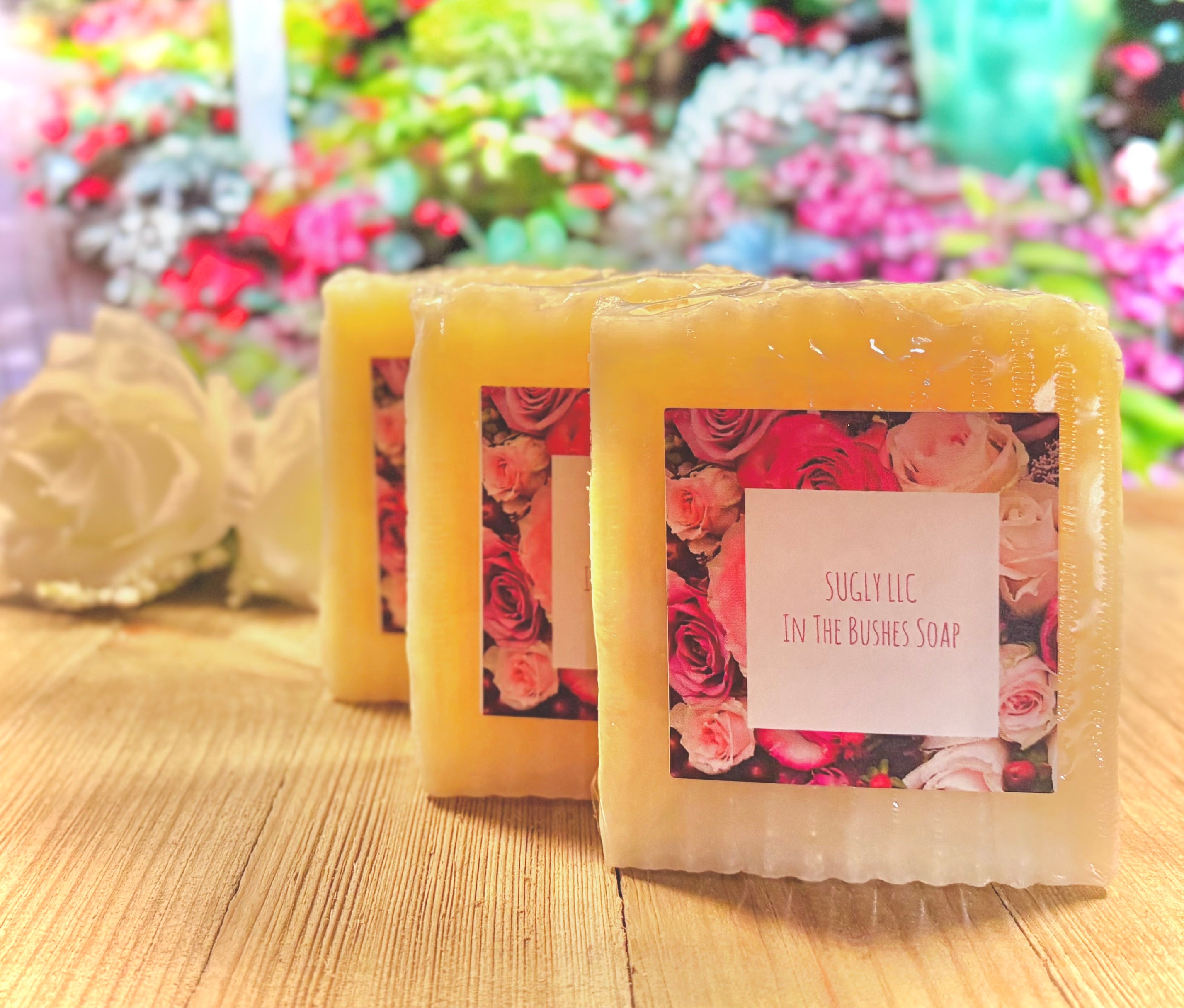 In The Bushes Soap has a delicate natural rose scent. It lathers up like a beauty cream and leaves your skin hydrated. One In The Bushes Soap Bar of at least 4 oz or Two In The Bushes Bar Soaps with a combined weight of at least 7 oz. *Don't forget a Soap Cushion to help extend the life of your soap!
