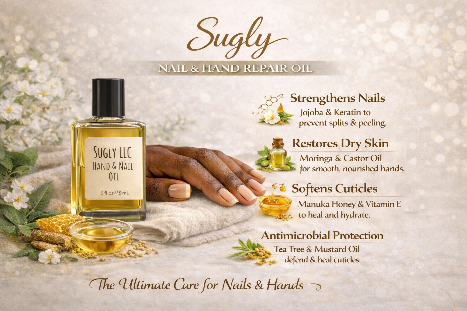 Give back to your hard-working hands with the Sugly Hand and Nail Kit. With nail-loving ingredients such as keratin, Manuka Honey Extract, Vitamin C, Vitamin E, Tea Tree Essential Oil, Moringa oil, Neem oil, and Jojoba oil, your hands will be set to start anew.