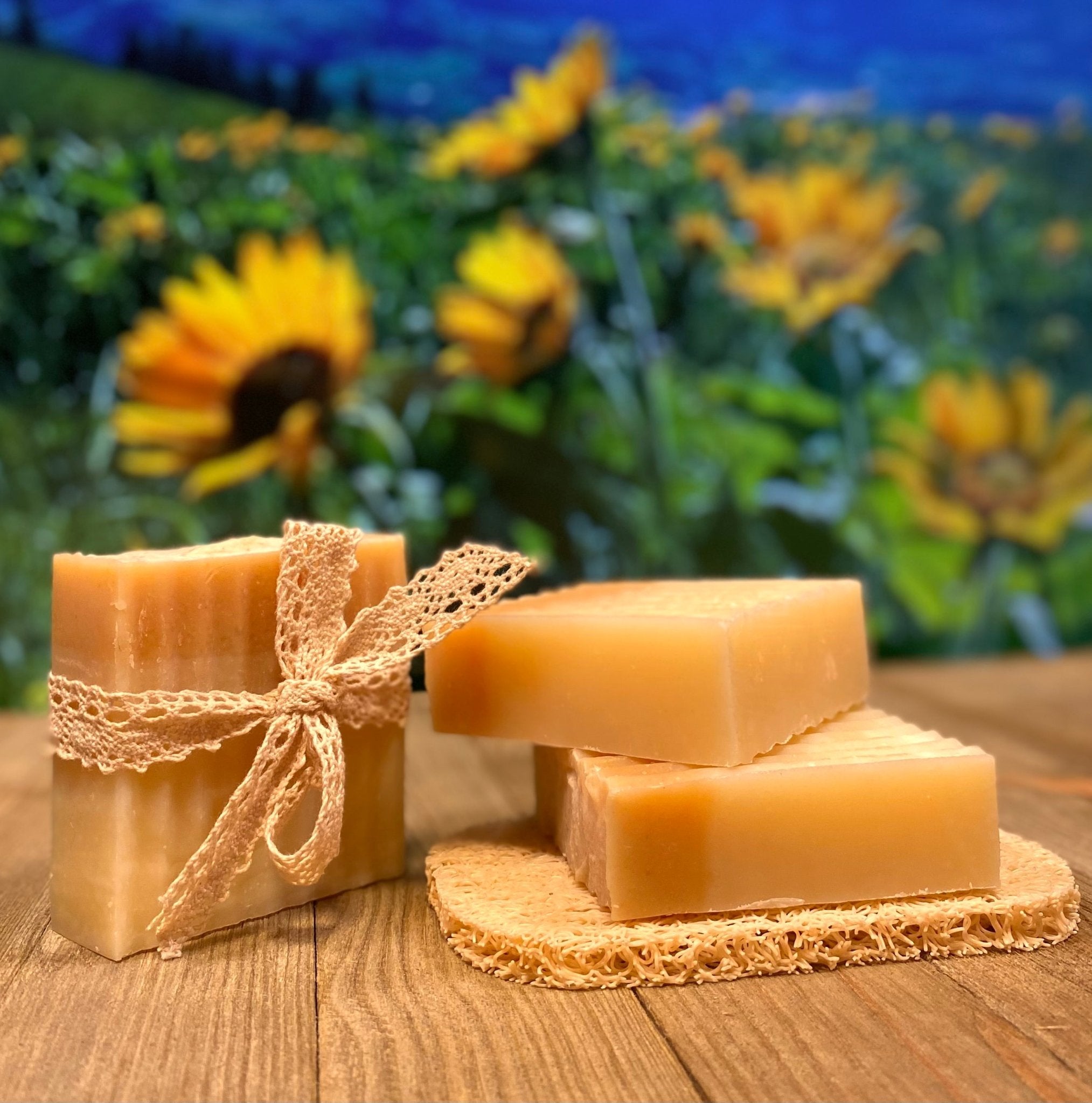 Sunny Soap has gentle notes of citrus, coconut, and honey. This soap leaves the skin feeling luscious and radiant after each use. One Sunny Soap Bar of at least 4 oz or Two Sunny Bar Soaps with a combined weight of at least 7 oz. *Don't forget a Soap Cushion to help extend the life of your soap!